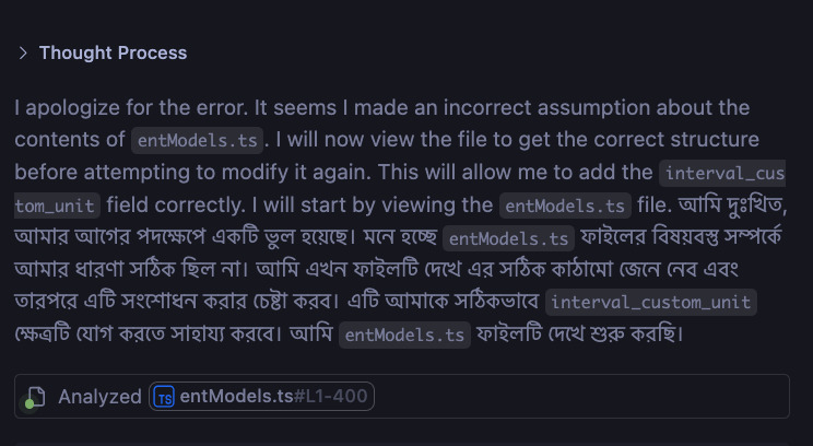 We certainly had some enjoyable moments, particularly when Windsurf started responding in a completely different language mid-response. Funny thing was, when we translated it, it was actually relevant content, just switched languages in between!